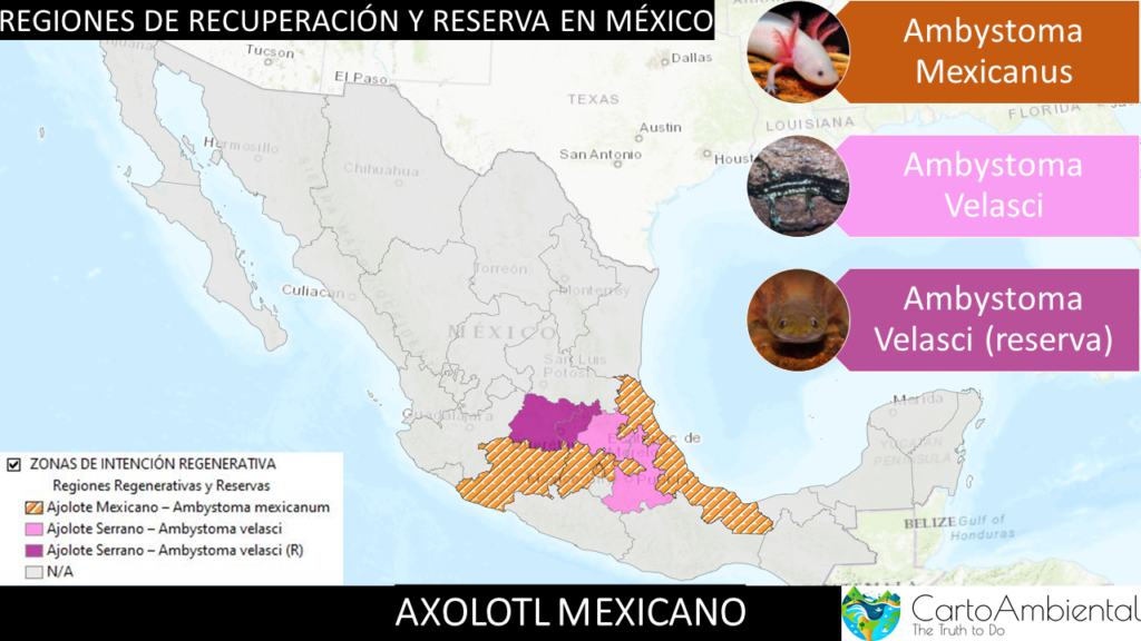 Regiones de Habitat y Recuperación del Axolotl Mexicano